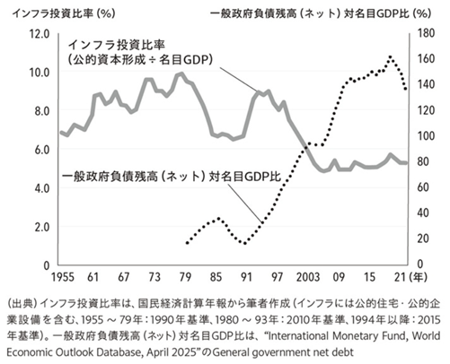 といった課題が露呈、顕在化し、これまでの「作っては直す」インフラ政策は持続困難になりつつあります。社会保障対策のほうに舵をとらなければいけない現在、対GDP比は5%台で落ち着いています。1970年代、1990年代で積み増ししたインフラをどう整備・メンテナンスしていくかが必須の課題となってきています。