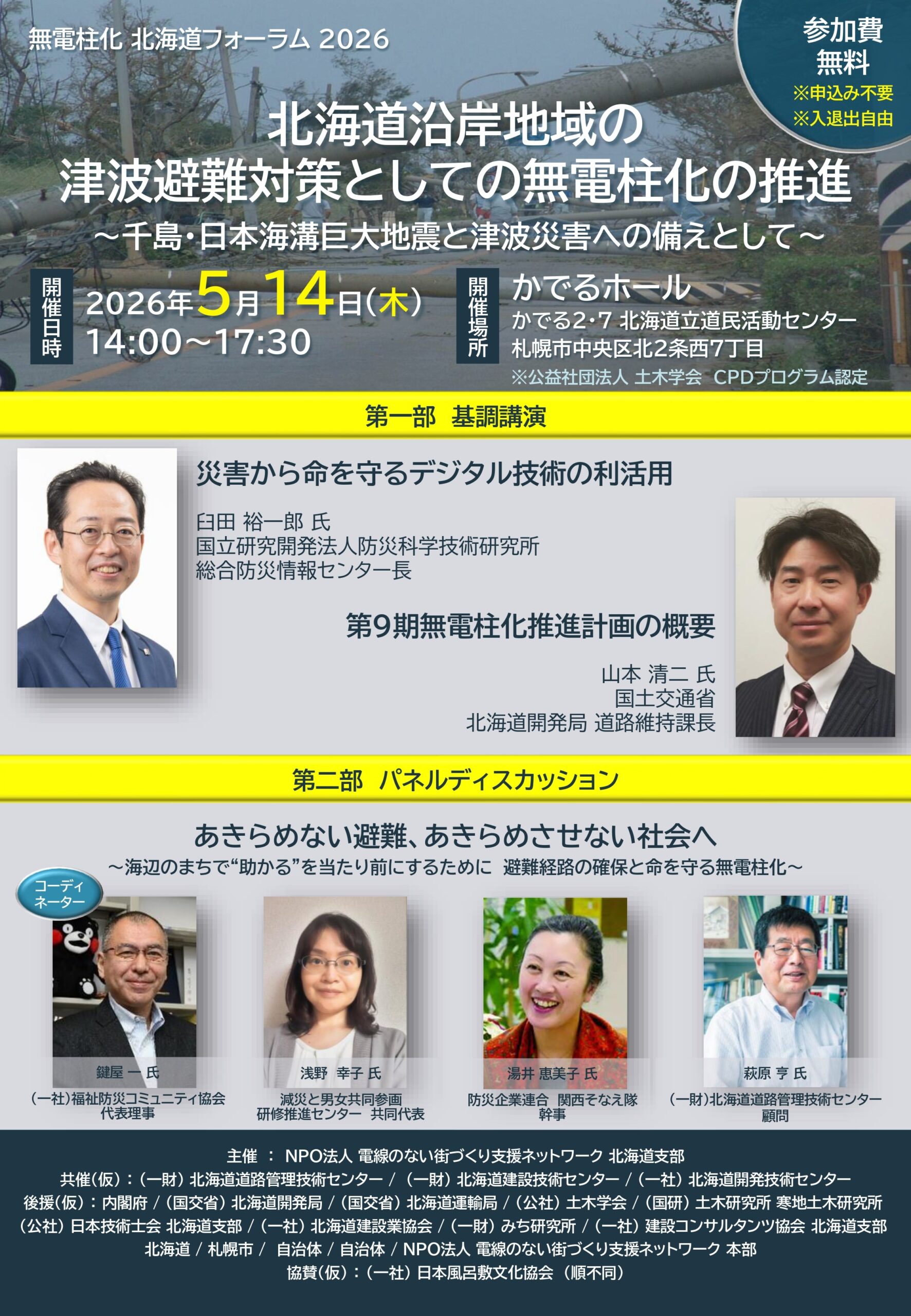本フォーラムは、こうした課題認識のもと、無電柱化を単なる景観施策や道路整備の延長ではなく、津波避難・災害対応を支える基幹インフラとすることを目的に開催するもので、次世代に安全な地域を引き継ぐための一歩となることを願っております。